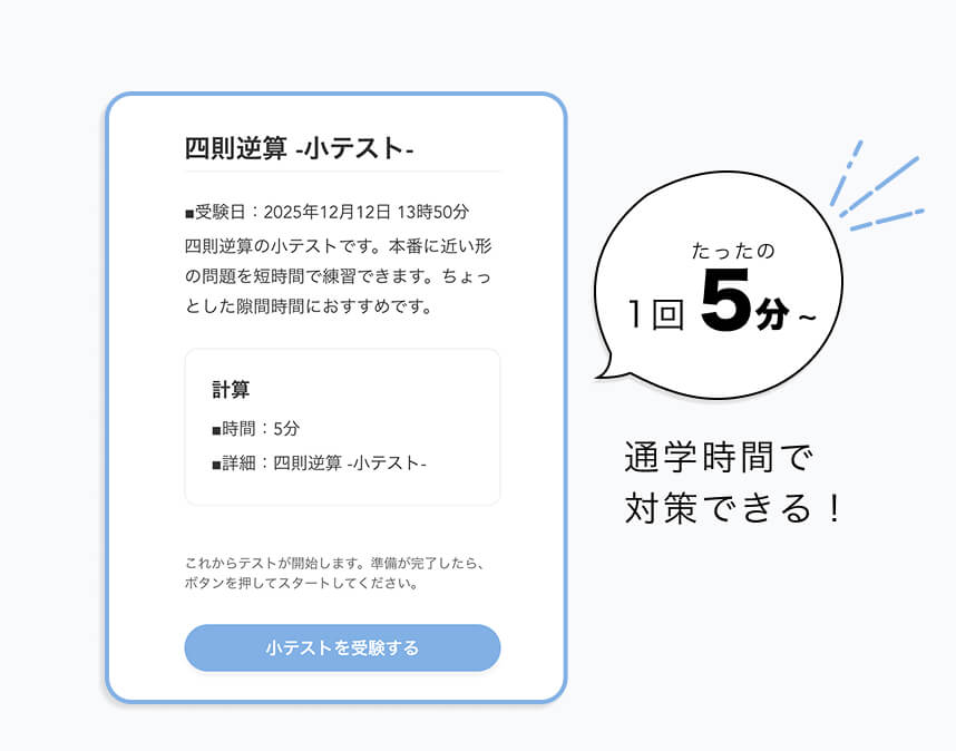 ポイント04一科目5分から!小テストでサクッと実力試し!