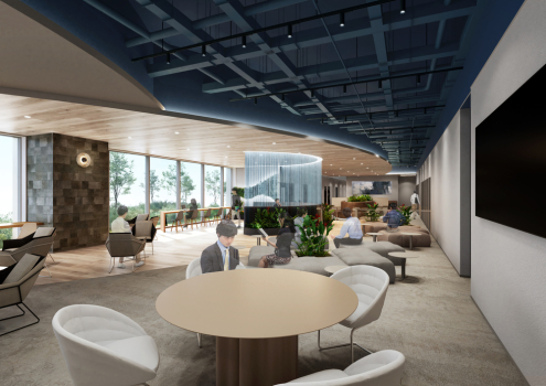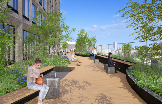 屋内の専用個室やビジネスラウンジと屋上庭園を行き来できる、